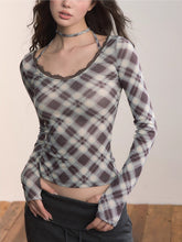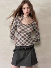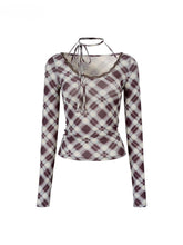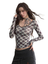 The tie-up neckline allows for adjustable styling, adding detail and sophistication. Designed with subtle gathers and silk touches, the plaid pattern enhances texture. A versatile long-sleeve knit piece suitable for spring, autumn, and winter, tailored for a slim fit to meet daily styling needs.