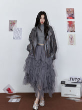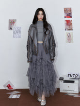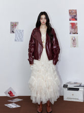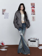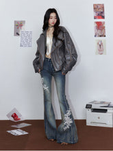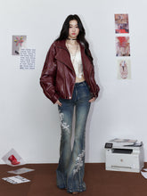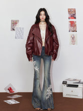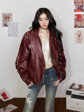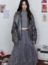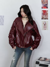 Striped Collar Biker Leather Jacket