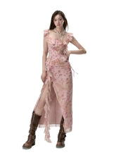 Distressed Floral Split Midi Dress