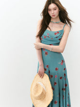 Product Name: Flowing Flower Waist-cinched Cowl-neck Dress