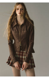 Coffee Metal Zipper Shirt