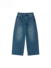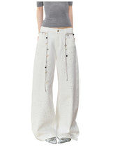 Product Name: 3D Rhinestone Wide - leg Denim Pants