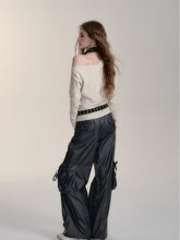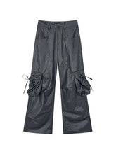 These wide-leg cargo pants feature a bold design with functional elements, including large pockets and decorative detailing for a casual yet stylish look. The adjustable fit and durable material make them perfect for daily wear, combining comfort and fashion with a utilitarian edge.
