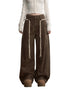 Product Name: Brown Double-Waistband Straight Pants