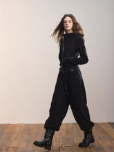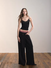 A stylish casual pant featuring a contrasting waistband and straight-leg design. The loose silhouette ensures comfort, while side pockets add practicality. Perfect for versatile daily styling in autumn and winter.