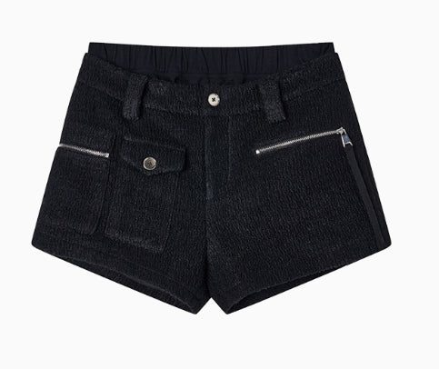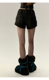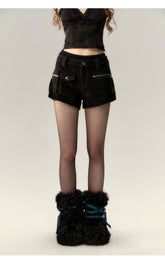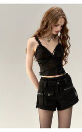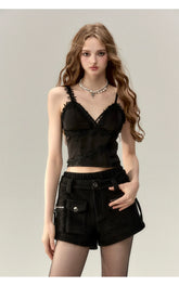 Black Double-Layer Patchwork 2-in-1 Shorts