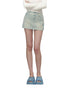 The denim skirt is enhanced with faux leather rope elements, breaking the casual look and adding a youthful vibe.