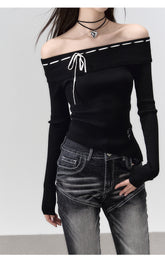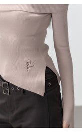 Cleverly crafted details collide with feminine elegance to showcase individuality and a soft aesthetic. This basic knit is elevated with a bustier-inspired off-shoulder neckline, offering a chic twist that’s especially flattering.