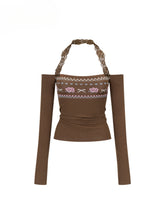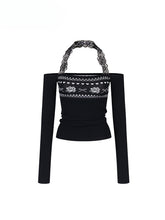 Product Name: Lace Halter Two-way One-shoulder Sweater