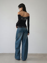 One - shoulder long - T breaks conventional fit. Lace halter enables two - way versatile design.