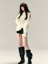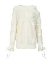 Breaks the monotony of traditional knitted garments with a bold design featuring an off-shoulder style. The rich details create a chic and sophisticated visual appeal. The 3D floral accents and cuff details add charm and versatility. Perfectly pairs with skirts or trousers for a comfortable and stylish look.