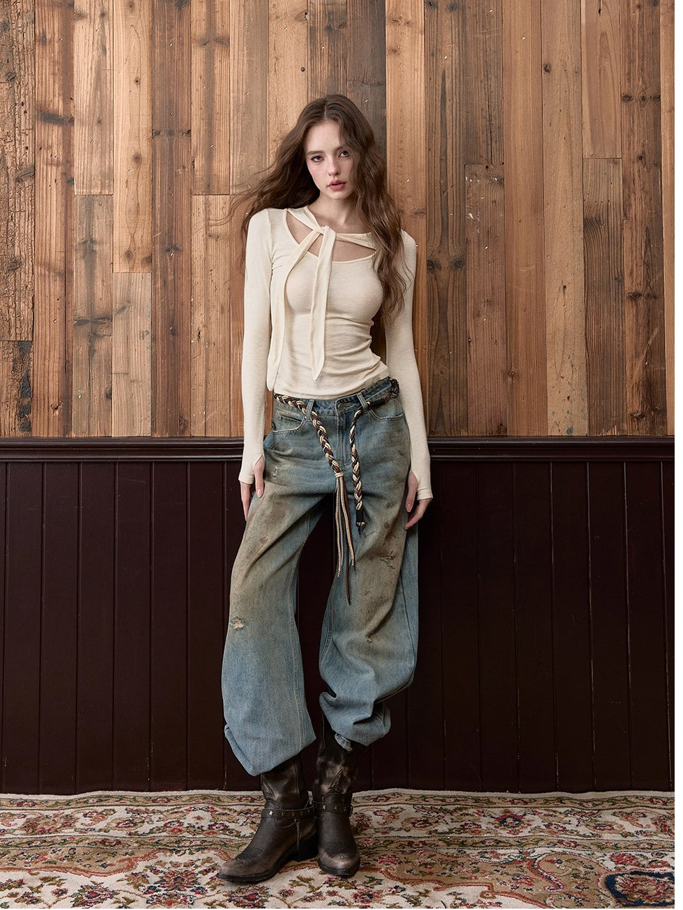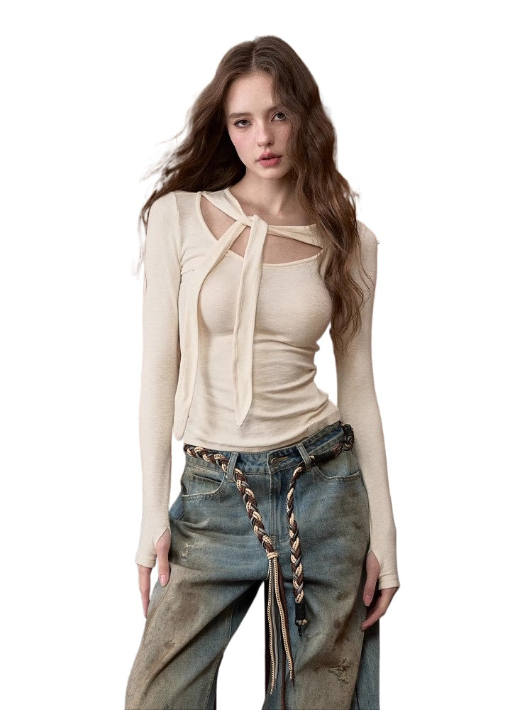 Studded Asymmetric U-Neck Long Sleeve Knit TopStudded Asymmetric U-Neck Long Sleeve Knit TopNew Arrival- Regular price