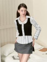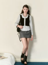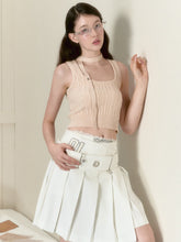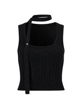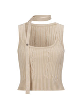 Black & Beige Ribbon Knit Tank Top