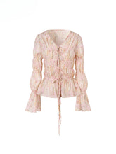 Product Name: Small Floral Tie-Waist Sun-Protection V-Neck Blouse