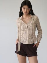 Product Name: Contrast-colored Collared Waist-cinched Shirt
