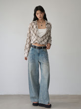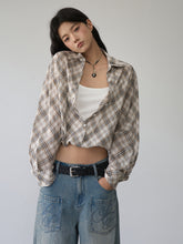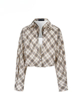Two - piece look presented as vest + shirt. Inner white contrasts with outer checks for impact.
