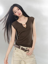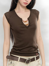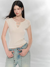 Crafted from a soft lyocell-blend knit, this top offers a lightweight feel with subtle stretch for everyday comfort. The V-neckline features delicate bead embellishments and a cut-out detail, adding dimension and a refined focal point. Structured cap sleeves enhance the shoulder line, while the fitted silhouette creates a clean and flattering shape. Easy to style for both casual and polished looks, it pairs effortlessly with trousers or skirts.