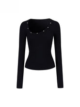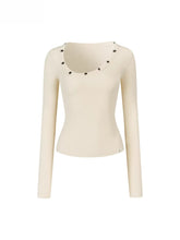 Studded Asymmetric U-Neck Long Sleeve Knit Top