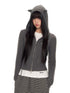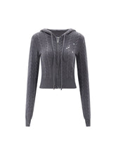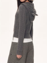 This hoodie is crafted from a soft wool-blend knit that offers a warm, gentle texture suitable for everyday comfort. The design highlights a custom metal butterfly logo at the chest and a mother-of-pearl button accent that adds a subtle, refined sheen. Hand-stitched cat-ear detailing on the hood brings a playful touch to the clean silhouette, while its versatile cut pairs easily with casual or layered outfits. The lightweight yet structured knit provides ease of movement and a flattering, wearable shape.