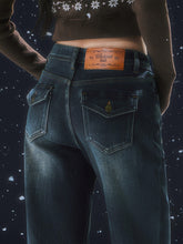 Navy Blue Retro Fleece-lined Flare Pants