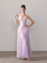 Light Purple Gradient Embroidered Bud Lace Long Dress