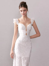 This long dress showcases delicate French lace adorned with flower patterns, exuding a romantic and elegant charm, perfect for special occasions.