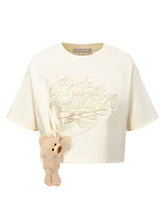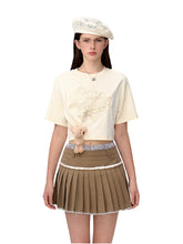 Applique Embroidery Gathered Short-Sleeve T-Shirt
