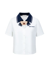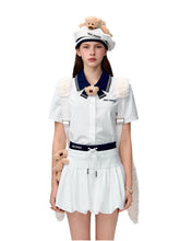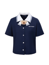 This is a navy collar short-sleeve shirt. Made from a blend of polyester and viscose, it offers a comfortable fit and features a classic navy collar design for a stylish and elegant look.
