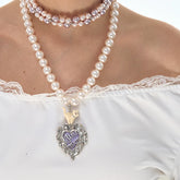 1JINN M2M, Cat Heart Enamel Pearl Necklace