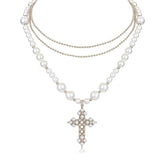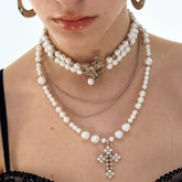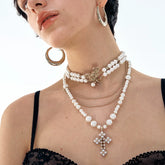 1JINN M2M, Gothic Angel Pearl Cross Choker