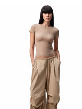 This T - shirt features a basic slim - fit silhouette that conforms to curves, offering excellent body - shaping effects. It is sewn with a seamless special - purpose machine and adopts a seamless flat lock - stitching process, ensuring a more comfortable fit when worn close to the body. The cuffs and hem are designed with frayed edges for a more laid - back and casual feel. With a solid - color aesthetic design, it is suitable for various scenarios such as commuting, fitness, and leisure. A customized metal logo is heat - transferred on the back center.