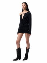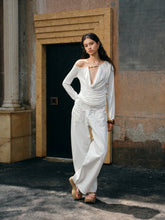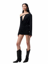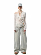 Beaded Cowl Neck Off-shoulder Long-sleeve Tunic