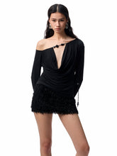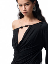 Product Name: Beaded Cowl Neck Off-shoulder Long-sleeve Tunic