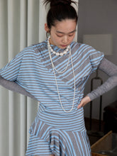 Product Name: Blue-Gray Striped Irregular Patchwork Dress