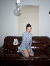 Adopts skin - friendly and breathable rib knitted fabric, creating a visual sense of hierarchy with contrasting color thick and thin stripes. The small turtleneck is paired with a slightly puffed bubble sleeve design, modifying the shoulder and neck lines; multiple dividing lines outline the slim silhouette, and the hem has a wavy umbrella skirt hem, which is flexible and elegant when walking. The overall design combines retro style with modern tailoring, considering both wearing comfort and styling sense, suitable for matching in various occasions.