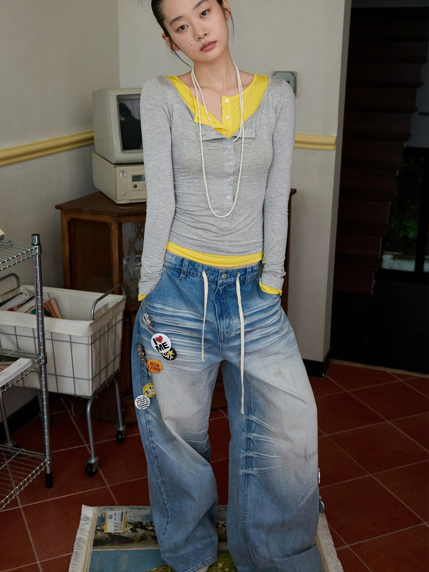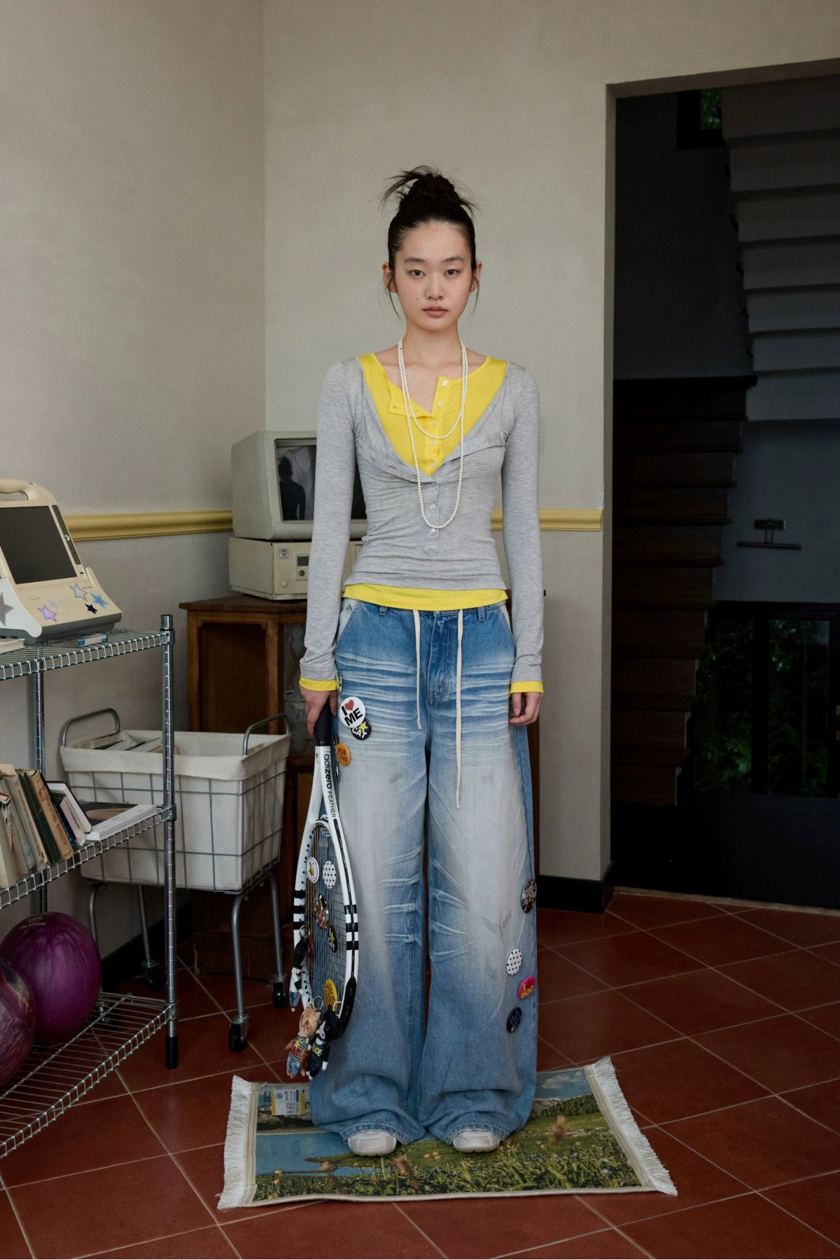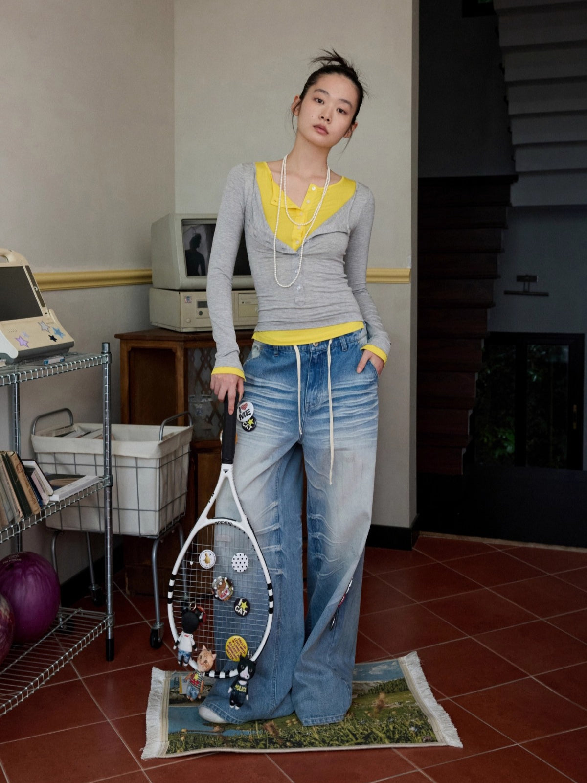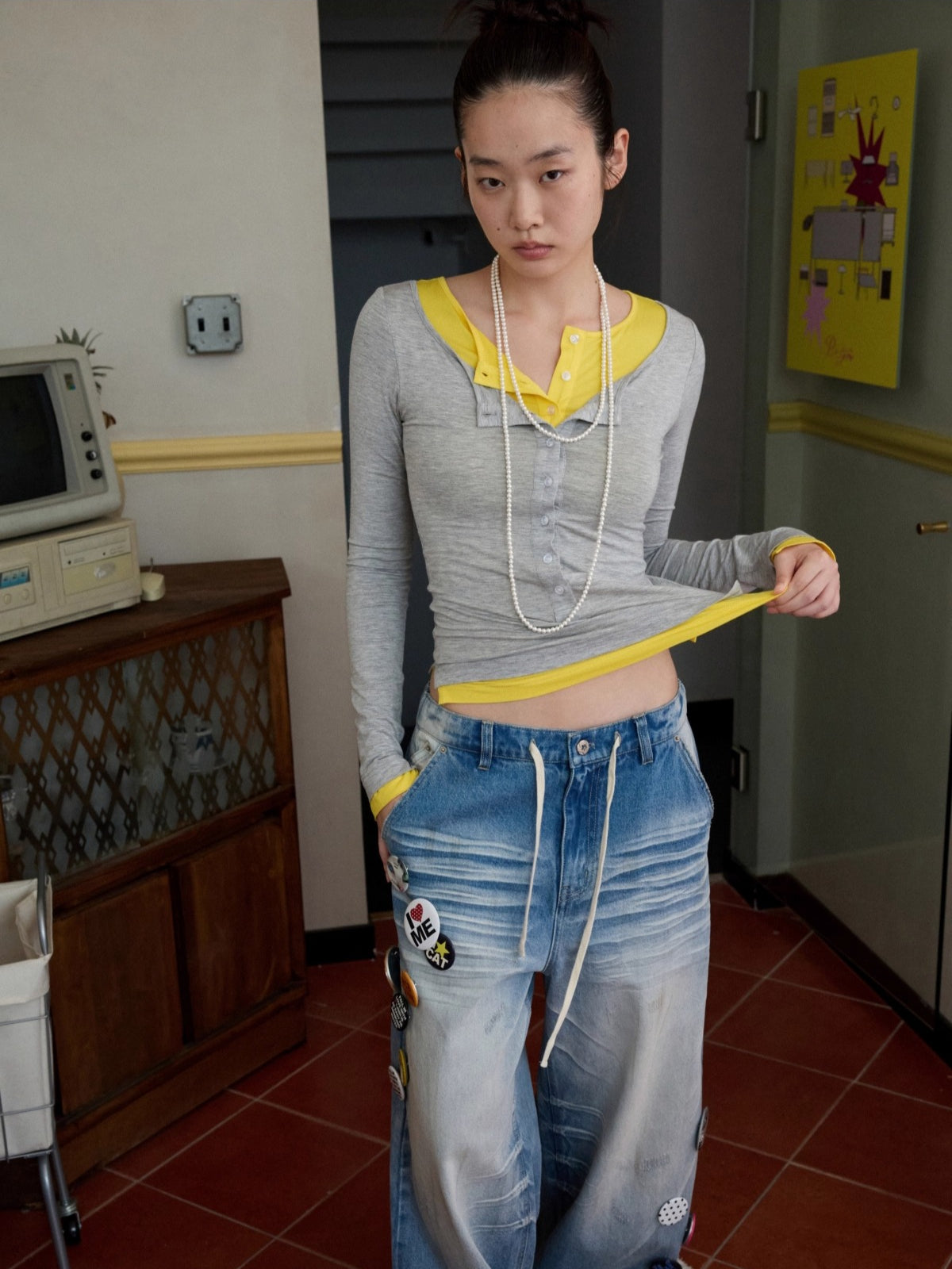 Dual-layer knit Henley collar with an integrated slimming cut and faux two-piece silhouette. The contrast design at the collar, hem, and cuffs creates layered visual effects. Clean but not simple. Made with high-stretch knit for a soft, breathable texture with a skin-friendly, structured finish—balancing ease and style.