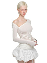 The JINN STUDIO long sleeve T-shirt features a deconstructed design with an asymmetrical shoulder cut that creates a unique and stylish look. The buttoned design adds elegance, while the slim fit waist accentuates your natural curves, perfect for creating a sultry, fashion-forward appearance. Its soft and comfortable fabric makes it perfect for layering underneath other outfits, presenting a smooth, flattering silhouette.