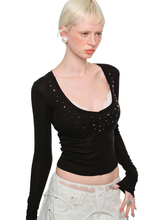 Deep V-Neck Studded Rhinestone Top