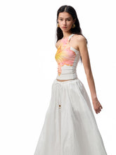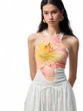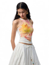 This vest exudes a lazy - vacation vibe with floral prints and rhinestones. Its body - hugging and waist - cinching silhouette optimizes body proportions. The original floral print combines floral elements with imported Austrian colored rhinestones. Linear rhinestone embellishments add depth and dynamism to the pattern, creating a visual focal point. It effortlessly creates a romantic summer atmosphere.