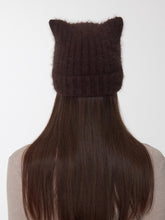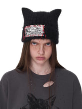 This pure-tone knitted beanie is made from a soft, stretchy blend of long rabbit hair and viscose yarns for a plush yet breathable texture. Designed to comfortably fit different head shapes, it flatters facial contours while keeping a relaxed silhouette. The subtle rib-knit base naturally forms perky cat ears when worn, adding a playful yet stylish twist. Finished with a hand-stitched logo tag and contrast seams for a touch of individuality and charm.