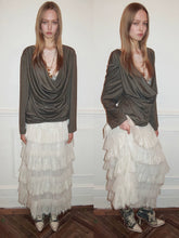 Crafted from soft, high-stretch fabric, this top offers a smooth and breathable feel with a flattering, body-skimming fit. The faux layered construction creates a natural draped neckline, enhanced by delicate lace trim for added depth and femininity. Designed with a reversible feature, it can be worn as an elegant draped neck or a clean round neckline for versatile styling. Blending comfort with refined detailing, this piece transitions effortlessly between casual and elevated looks.