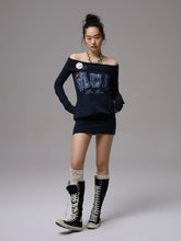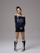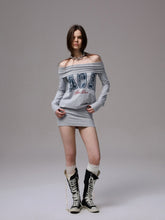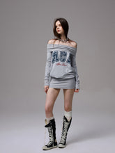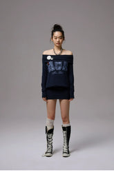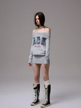 Off-shoulder printed bodycon dress. It features a loose and casual waist design for a carefree wearing experience. The folded off-shoulder neckline design is paired with a bodycon ribbed hem. High-elasticity ribbing ensures comfort without tightness, easily creating a relaxed and lazy atmosphere.