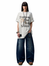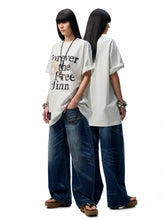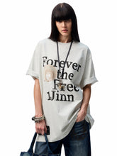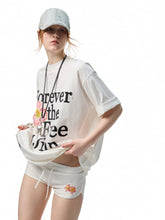 This T - shirt features a classic casual oversize silhouette. The dropped - shoulder design paired with loose straight - tube cuffs softens the shoulder lines, easily accommodating different body types for a comfortable fit. With a gray - white color palette as the main tone, it meets daily versatile matching needs. The original floral and alphabet prints, embellished with customized fun rhinestone logos, enrich the visual effect.