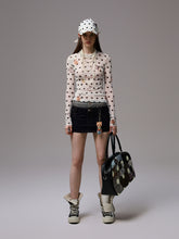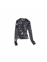 This fitted long-sleeve blouse combines a classic straight-shoulder silhouette with slimming details for versatile wear. The mock neck design with delicate seam lines and structured back panels adds depth and definition. Polka dot prints merge playfully with original animal motifs for a rich visual effect. Precision cutting highlights the tailored look, while the lightweight mesh-blend fabric ensures breathability, elasticity, and comfort. Perfect for layering or standalone wear, this piece balances bold style with everyday practicality.