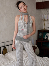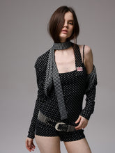 Polka dot stripe double-sided small scarf, with a slender and narrow design, easy to match casually. Decorated with an exclusive custom cat tooth logo, delicate and cute. Selected double-sided jacquard knitted fabric, one fabric for two uses. The collision of stripes and polka dots brings a full retro atmosphere.