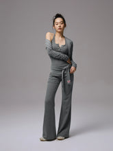 Crafted from premium double‑faced jacquard knit for a smooth, skin‑friendly touch without any restriction. Breathable fabric keeps you dry and comfortable all day. The Henley‑collar vest is trimmed with delicate ruffles and fine topstitching for a crisp, dimensional finish. Its reversible design blends classic stripes with playful polka dots for a full retro vibe. The matching high‑waist, straight‑leg pants flow effortlessly from waist to hem, offering excellent coverage to flatter any leg shape.