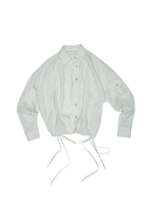 This set features a diagonally cut, floral‑patterned stripe shirt in a relaxed, loose fit. The ruffled hem is paired with an adjustable drawcord for versatile coverage and dimension, while bias‑cut stripes add rich visual layers. Three‑dimensional sleeve pockets offer both practicality and style.