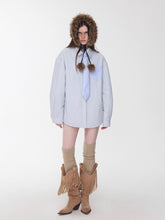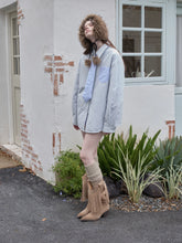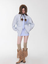 Crafted with eco-friendly faux raccoon fur on the outside and soft sherpa wool on the inside, this reversible collar offers both warmth and texture. The fluffy structure and plush density deliver cozy comfort, while the braided tie-up strap with pom-pom details adds a playful yet feminine charm. Available in classic black and natural beige, it pairs effortlessly with coats, sweaters, or knitwear to bring a touch of gentle warmth to winter looks.