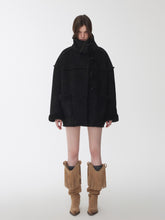 Double-faced construction pairs a soft matte faux-suede exterior with dense faux-shearling for built-in warmth and structure. A clean stand collar and horn-toggle closure sharpen the silhouette, while the reversible design lets you switch from textured shearling to suede for two distinct looks. Oversized proportions layer easily over winter knits and elevate everyday city outfits. Practical details—secure front closures and insulating pile—balance style and function for cold days.