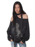 Rhinestone Graphic Off-Shoulder Tie Sweatshirt